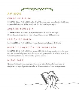 1155 HOJA PARROQUIAL6 por Elena | Ene 10, 2025 | 0 Comentarios Enviar comentario Cancelar la respuestaTu dirección de correo electrónico no será publicada. Los campos obligatorios están marcados con *Comentario * Nombre * Correo electrónico * Web Guarda mi nombre, correo electrónico y web en este navegador para la próxima vez que comente.