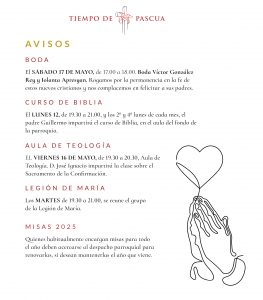 1172 HOJA PARROQUIAL OK YA6 por Elena | May 9, 2025 | 0 Comentarios Enviar comentario Cancelar la respuestaTu dirección de correo electrónico no será publicada. Los campos obligatorios están marcados con *Comentario * Nombre * Correo electrónico * Web Guarda mi nombre, correo electrónico y web en este navegador para la próxima vez que comente.
