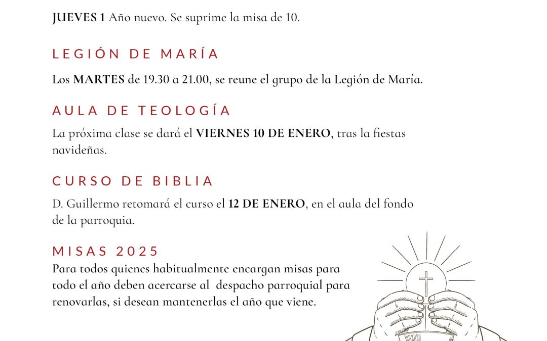 1205 HOJA PARROQUIAL7 por Elena | Dic 26, 2025 | 0 Comentarios Enviar comentario Cancelar la respuestaTu dirección de correo electrónico no será publicada. Los campos obligatorios están marcados con *Comentario * Nombre * Correo electrónico * Web Guarda mi nombre, correo electrónico y web en este navegador para la próxima vez que comente.