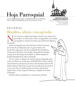 1210 HOJA PARROQUIAL por Elena | Ene 30, 2026 | 0 Comentarios Enviar comentario Cancelar la respuestaTu dirección de correo electrónico no será publicada. Los campos obligatorios están marcados con *Comentario * Nombre * Correo electrónico * Web Guarda mi nombre, correo electrónico y web en este navegador para la próxima vez que comente.